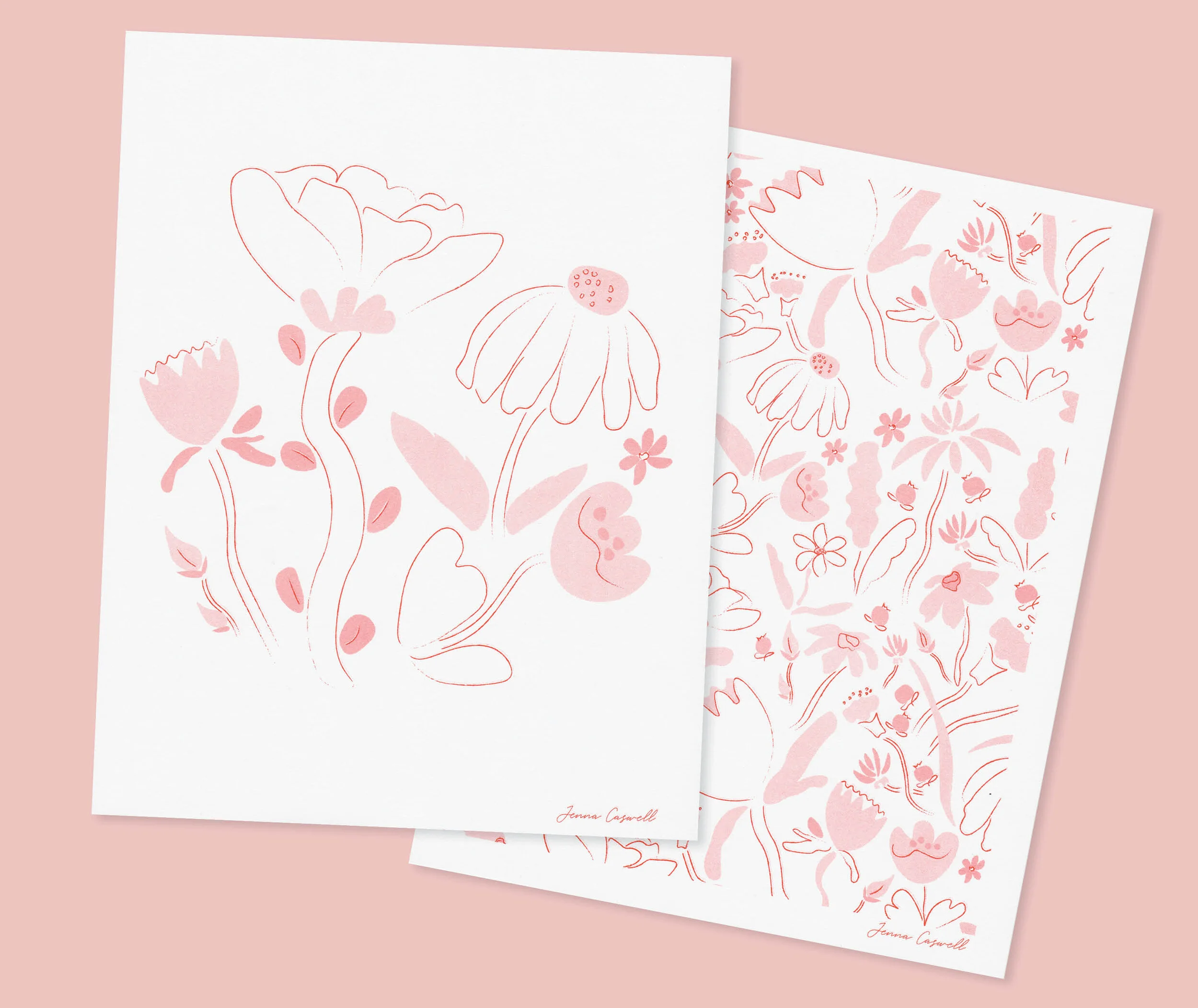 In this collection, I depict growth in illustrative and abstract styles that play with the concepts of the beauty within moments of growth, but also the ambiguity. Using a warm and playful colour palette, I create patterns with bold shapes and expressive line-work. Each moment of growth is expressed individually but all follow the same visual narrative, ranging from the slow and quiet transformation of a little seedling, to a bold and loud garden full of blooms.