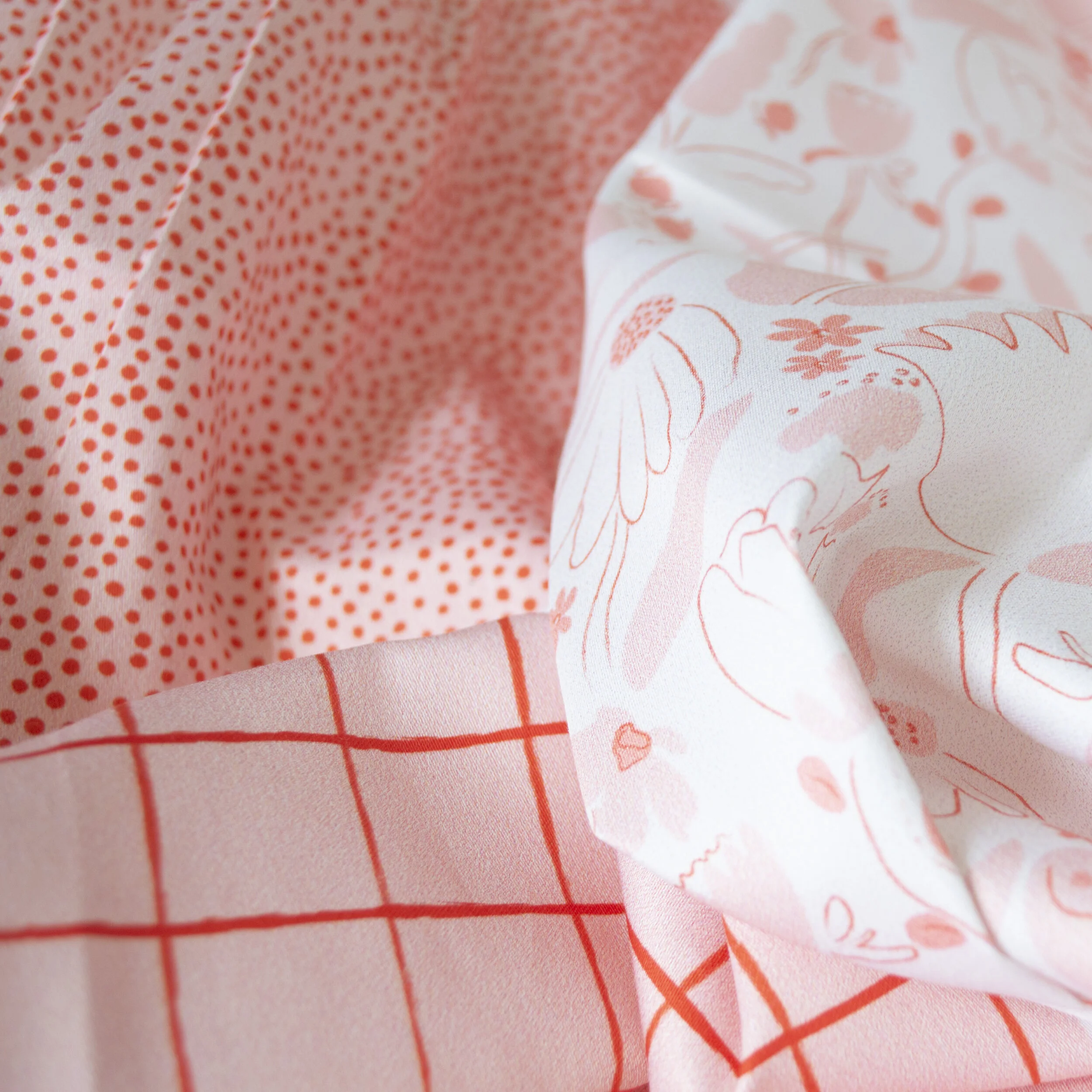 Through this collection I explored materiality and how the application of patterns on different surface impacts the overall feel. I explored the applications of wrapping paper, digitally printed fabric, risograph printing and lasercutting in two colourways.